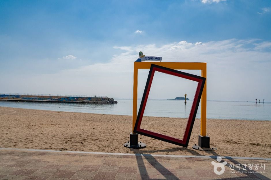 천진해변은 천진항과 인접하여 초승달 모양의 해안선을 따라 백사장이 펼쳐져 있는 곳이다. 1972년 개장된 이래 매년 해변과 백사장이 사계절 운영되고 물이 맑고 청정할 뿐 아니라 백사장이 깨끗하다. 해변은 전체적으로 얕은 편이고 파도가 잔잔하여 아이들이 놀기에 좋은 해변이다. 수심이 낮아 가족단위와 젊은이들의 피서지로 각광받는 곳으로 매년 오징어 잡기 대회가 열린다. 천진항 포구에서 생산되는 싱싱한 활어회를 즐길 수 있고 방파제에서는 바다낚시를 즐길 수 있다. 전체적으로 얕은 편이고 파도가 잔잔하여 아이들이 놀기에 좋은 해변이다.