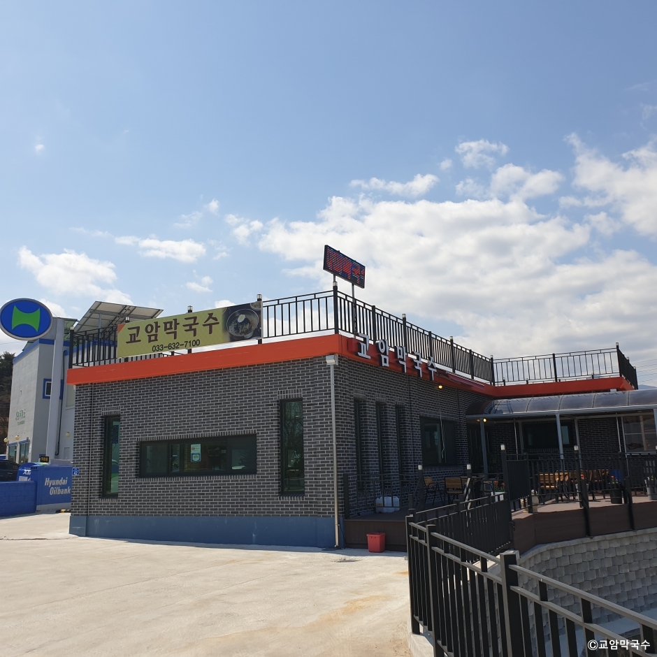교암막국수는 강원도 고성군에 있는 막국수 전문점이다. 아야진 해수욕장, 백도해수욕장, 교암해수욕장과 멀지 않아 여행객들이 많이 찾는 맛집이고 현지인들 사이에서도 유명하다. 막국수는 비빔이나 물로 구분하지 않고 판매하는데, 여기에 동치미 육수, 양념장, 들기름을 넣어 취향껏 즐기면 된다. 처음에는 들기름을 약간 넣어 열무김치와 먹고 두 번째는 비빔장을 넣어 비빈 뒤 명태식해와 백김치와 함께 먹는다. 마지막으로 남은 국수는 시원한 동치미 육수를 부어 먹는데 어떤 방법으로 먹든 최상의 맛을 경험할 수 있다.