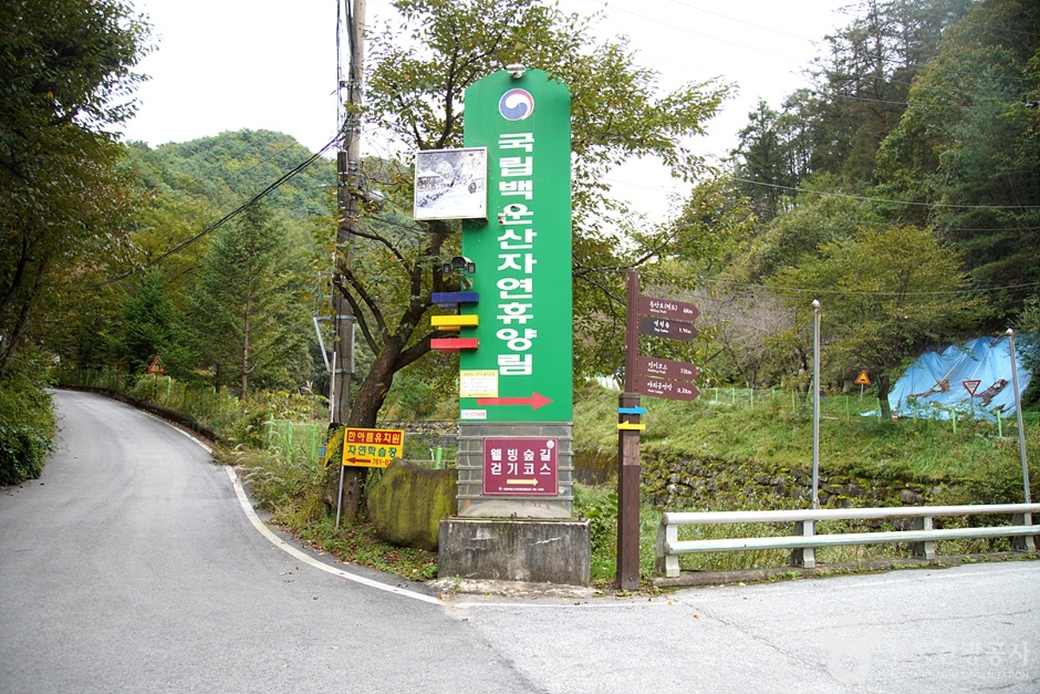 국립 백운산자연휴양림은 강원도 원주시 판부면과 충북 제천시 백운면의 경계에 위치한 해발 1,087m의 백운산 자락에 위치하고 있다.
