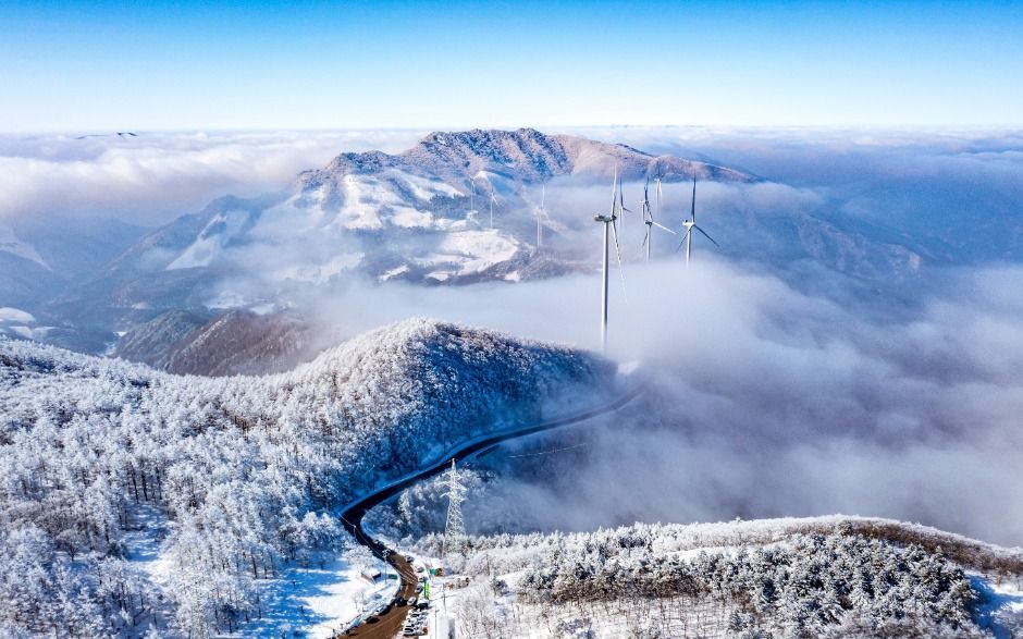 함백산 자락에는 눈꽃 명소인 만항재와 설경이 유독 아름다운 정암사가 있다. 만항재는 강원도 정선과 태백, 영월이 경계를 이루는 고개이다. 높은 고갯마루에 펼쳐진 순백의 세상과 발아래 겹겹이 물결치는 백두대간 풍경은 고갯길에서 가만히 서 바라보는 것만으로 황홀감을 안겨준다. 만항재는 천상의 화원이라는 수식어가 늘 따라다닌다. 봄부터 가을까지 다양한 야생화가 풍성하게 피어나고 이른 아침이면 안개가 밀려들어 몽환적인 풍경을 연출한다. 모든 풍경이 아름다우나 진정한 만항재의 매력은 겨울에 있다. 만항재가 자리한 곳은 함백산 줄기가 태백산으로 흘러내리다 잠시 멈춘 곳으로 해발고도가 1,330m에 달한다. 고도가 높고 워낙 추운 지역이라 겨우내 환상적인 설국이 펼쳐진다. 만항재는 국내에서 차로 오를 수 있는 가장 높은 고개로도 유명하다. 힘들게 산행하지 않아도 아름다운 설경을 즐길 수 있다.