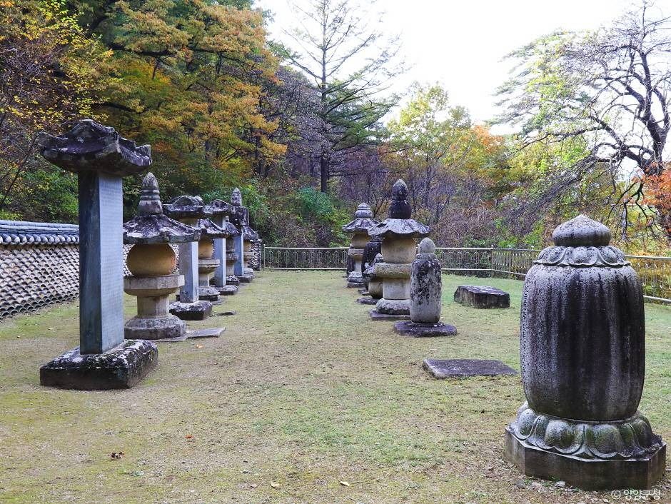 부도는 승려의 무덤을 상징하며 그 유골이나 사리를 모셔두는 곳이다. 명주사에 마련된 이 부도밭에는 모두 12기의 부도가 자리하고 있으며, 4개의 비석도 함께 남아있다. 12기의 부도 중에서 7기는 3단을 이루는 기단 위로 탑몸돌 및 지붕돌을 갖추었는데, 사각의 바닥돌과 둥근 탑몸돌을 제외한 각 부분이 8각을 이루고 있다. 나머지 5기는 받침돌 위로 종 모양의 탑몸돌을 올린 모습으로, 꼭대기에는 꽃봉오리 모양의 큼지막한 머리장식을 두었다. 4기의 비는 낮은 사각 받침 위로 비몸을 세우고 지붕돌을 갖춘 구조이다. 원래는 여러 곳에 흩어져 있었는데, 1994년에 지금의 자리로 모두 모아 보존하고 있다.