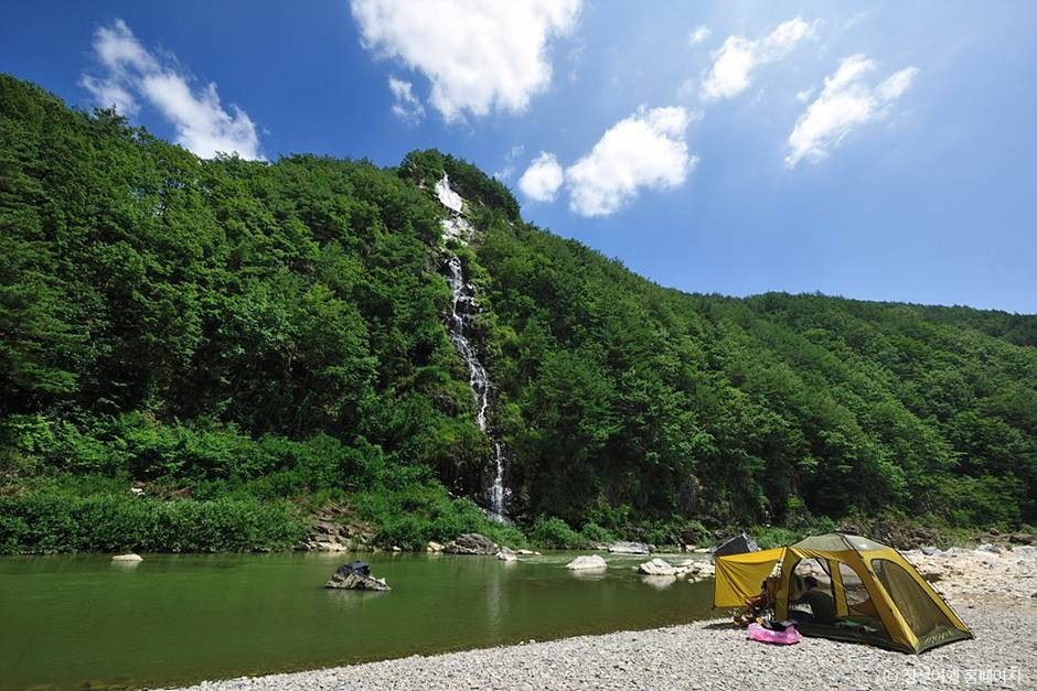 백석폭포는 강원도 정선군 북평면과 평창군 진부면에 걸쳐 있는 해발 1,170m의 백석봉 정상에서부터 흘러내리는 인공폭포이다. 길이 약 600m의 관을 매설해 주변 계곡물을 끌어다 오대천으로 떨어지도록 조성되었으며, 폭포의 높이는 약 116m에 이른다. 펌프로 억지로 물을 끌어올린 것이 아니라, 자연 계곡의 물줄기를 유도해 만든 폭포이기 때문에 보다 자연스러운 흐름을 유지하며 사시사철 물이 끊이지 않는다. 100m가 넘는 높이에서 떨어지는 물줄기는 장관을 이루며 주변 풍경과 어우러져 압도적인 경관을 자아낸다.