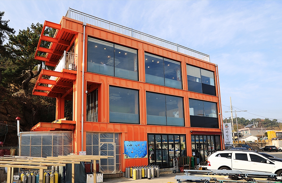 청간정아래 교암항 방파제 옆에 있는 문어 요리 전문점이다. 오렌지색 컨테이너 박스를 쌓아둔 것 같은 건물외관에 커다란 배짱이가 그려져있다. 대표 메뉴는 고성에서 잡은 문어를 직접 손질해서 만든 문어국밥으로 맵지않고 시원한 국물, 쫄깃한 문어 식감이 그대로 살아있다. 문어국밥의 문어는 샤브샤브처럼 살짝 익혀서 먹는 것을 추천한다. 메뉴판에는 각 문어메뉴에 대한 설명과 맛있게 먹는 팁까지 자세히 설명되어 있다.