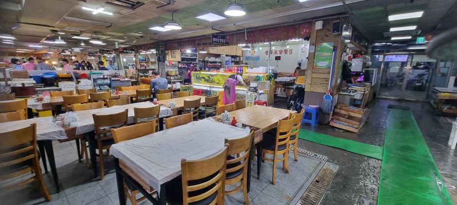 속초항에 인접한 수산시장으로 대형 주차장 등 접근성이 좋으며 활어 포장이 가능한 식당이 모여 있다.