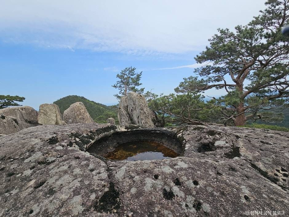 삼척시 동쪽 약 15km 지점, 전국적인 명산인 두타산의 북동쪽에 솟은 작은 봉우리인 쉰움산은 태백산과 마찬가지로 무속의 성지로 알려져 있다. 산 곳곳에는 치성을 드리는 제단과 돌탑이 즐비하며, 이곳에 놀러 온 한 할머니가 신내림을 받아 무당이 되었다는 전설이 전해지는 등 신령스러운 분위기를 지닌다. 쉰움산은 다양한 고서에서 두타산과 함께 등장하며, 특히 쉰움산 바위 암반에 위치한 ‘오십정[五十井]’이라는 돌우물이 유명하다. 이는 풍화작용으로 인해 밥그릇에서 세숫대야 크기까지 다양하게 패인 돌구멍 50개가 모여 있는 곳으로, 그 형상에서 이름이 유래되었다. 이 산에는 고려 후기의 문신이자 역사서 『제왕운기』의 저자인 이승휴가 머물렀던 유서 깊은 천은사(사적)가 자리하고 있다. 천은사 주변에는 오래된 고목과 울창한 숲이 어우러져 빼어난 경관을 이루며, 산 정상의 풍광과 계곡의 청정한 자연, 그리고 산기슭의 문화유산까지 갖추고 있어 쉰움산은 자연과 역사가 어우러진 최상의 명산으로 평가된다.