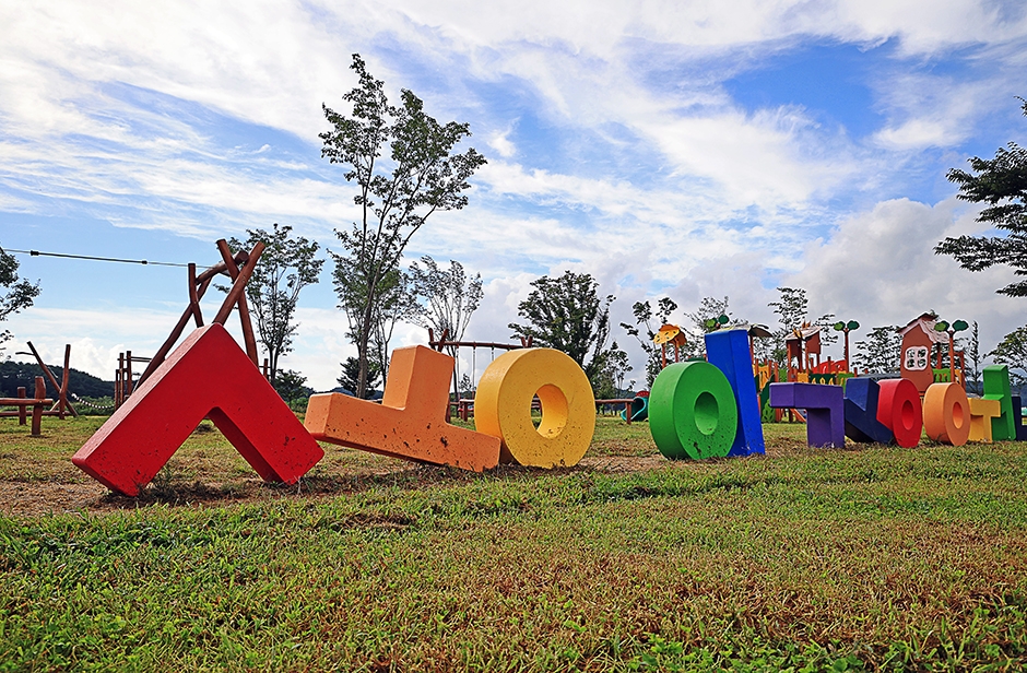 남대천 수변에 조성된 어린이놀이공원이다. 바로 아래에 연어생태공원이 있어 함께 둘러보기 좋다. 우선 강변에 넓게 잔디밭이 조성되어 있고, 잔디밭 옆에 초등학생들이 즐길 수 있는 십여 가지의 놀이시설이 갖춰져 있다. 공원에 들어서면 가장 먼저 송이조각공원의 자음과 모음을 일렬로 나열하고 무지개색으로 칠해놓은 조형물이 눈에 띄는데 포토존으로 인기다. 놀이시설들은 미끄럼틀, 시소, 작은 집라인, 그물타기, 나무 징검다리 건너기 등이 있는데, 전부 나무와 흙, 모래를 가지고 놀 수 있게 되어 있어 자연 친화적이다.