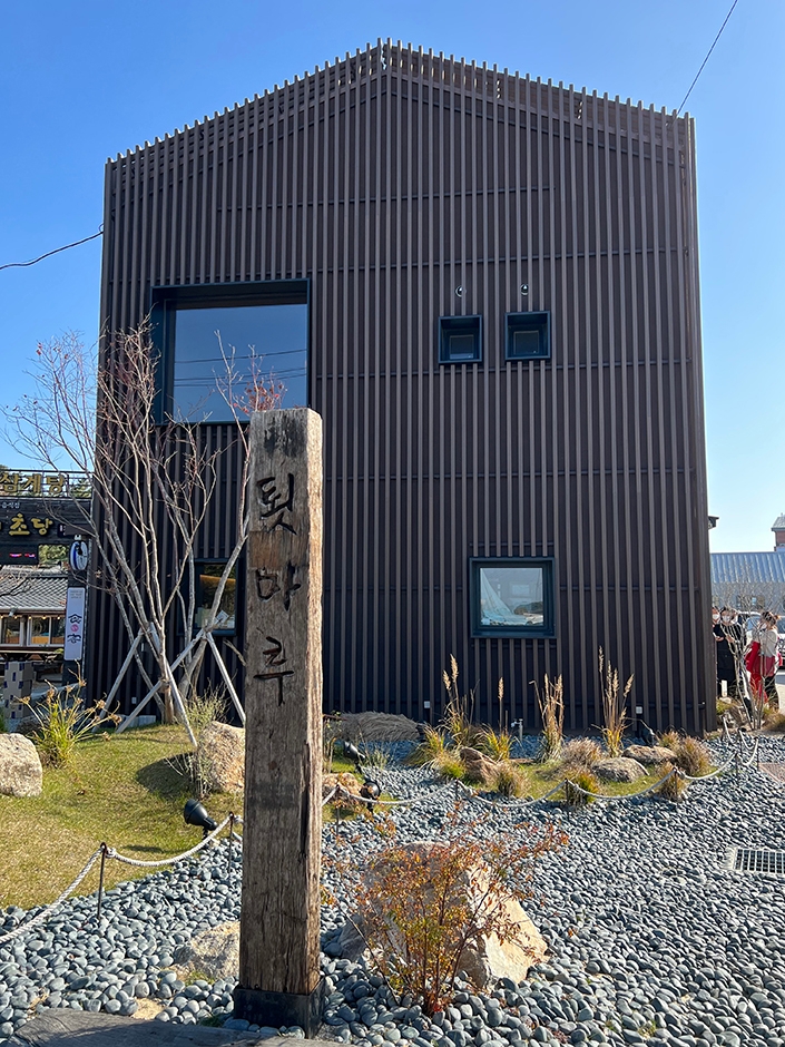 초당순두부마을, 경포 호수공원 근처에 있는 카페로 달콤, 쌉싸름하면서도 부드러운 흑임자라떼로 유명하다. 메뉴판에 차가운 툇마루커피라고 적힌 메뉴가 바로 흑임자라떼이다. 카페 내에서 커피를 마실 경우 추가 주문이 어렵기 때문에, 처음 주문할 때 원하는 만큼 커피를 주문하는 것이 좋다. 성채처럼 우뚝 솟은 독특한 외관의 건물 디자인도 눈에 띄지만, 더 눈에 들어오는 것은 한편에 길게 늘어선 사람들이다. 오래전부터 강릉의 핫플레이스로 소문이 나 항상 대기 시간이 길다.