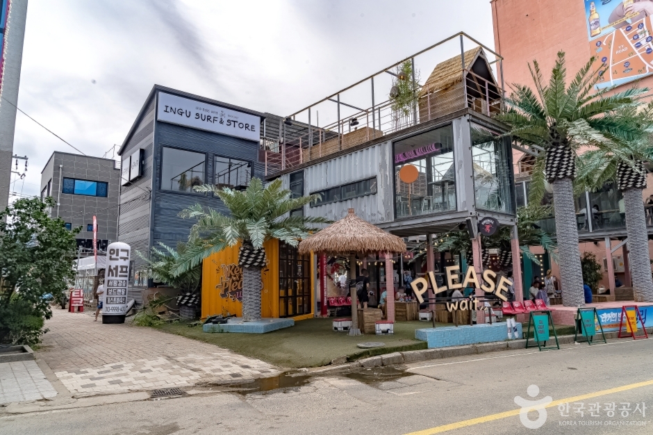 서핑족들의 성지 양양의 양리단길에 있는 플리즈웨잇은 인구해수욕장 내에 있으며 낮엔 카페, 한밤엔 펍으로 바뀌는 양양 카페이다.