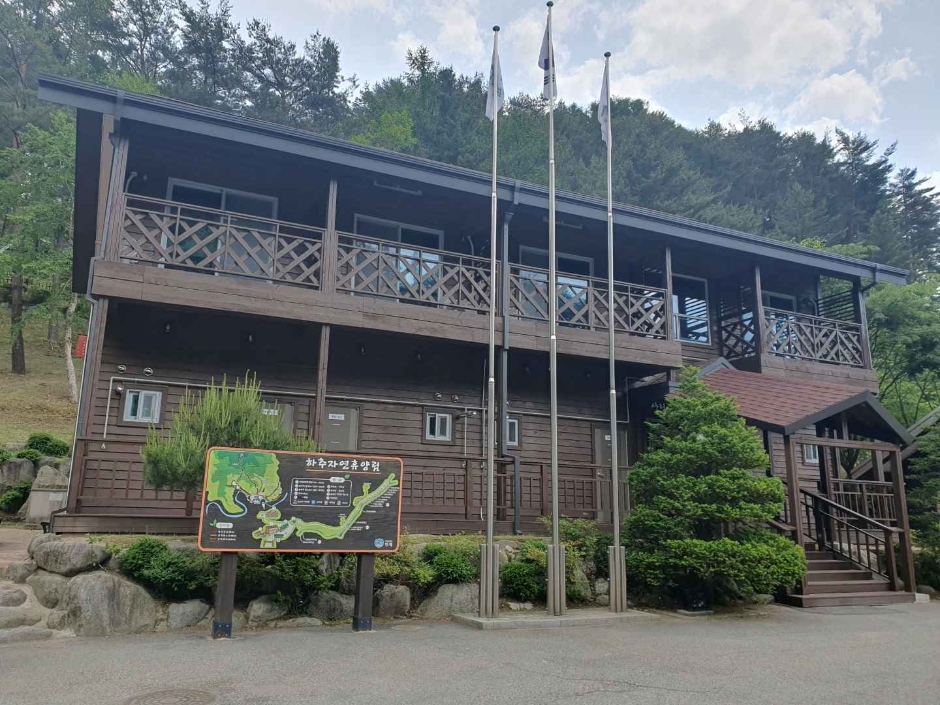 강원특별자치도 인제군에 위치한 하추자연휴양림에서는 콘도식 객실과 회의실, 식당, 야영시설 등 부대시설을 이용할 수 있다.