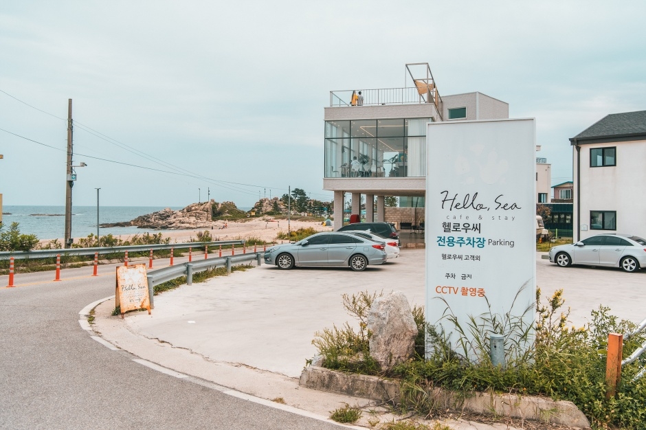 바다가 보이는 헬로우씨카페는 반려견과 함께 바닷소리와 풍경을 즐길 수 있는 카페이다. 커피와 차, 직접 구운 빵과 케이크, 쿠키를 판매한다. 카페 내부는 전면 통유리로 어떤 곳에 앉아도 오션뷰를 감상할 수 있다. 또한, 곳곳에 빈티지한 감성의 소품들이 놓여 있고, 센스 있는 포토존도 마련되어 있다.
