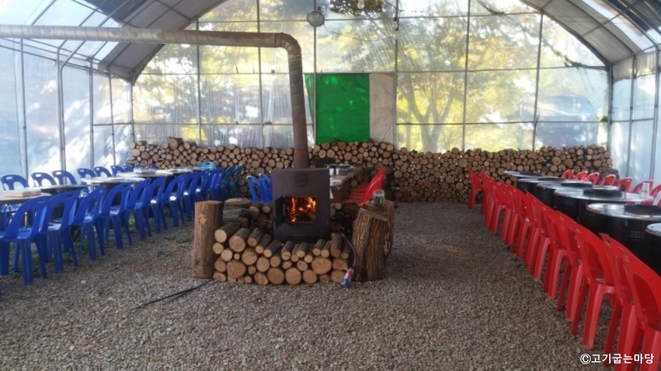 고기굽는마당은 양평군 옥천면에 있는 식당이다. 계곡과 넓은 운동장이 있어 고기를 주문해 놓고 신나게 놀면서 고기도 먹고 놀이도 즐길 수 있다. 고기는 초벌구이해서 나오기 때문에 주문해서 상차림까지는 시간이 걸리는 편이니 처음에 넉넉하게 주문하는 것이 좋다. 고기의 품질과 맛도 최상급이지만 같이 나오는 나물들도 인기가 좋다. 고기를 구워 먹어도 좋고 닭백숙이나 볶음탕 등 취향에 따라 맛볼 수 있다. 주차는 매장 앞에 넓은 주차장이 있어 편하게 주차할 수 있다.