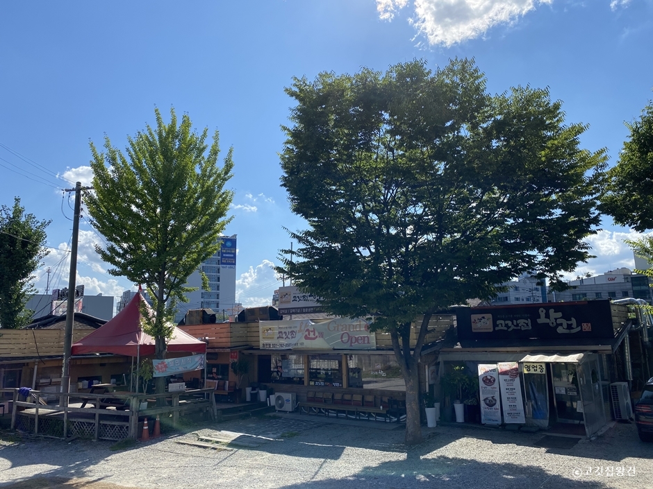고깃집왕건은 경기도 광주 터미널 근처 청석공원 앞에 있는 참숯불 구이집이다. 건물 1층에 있는 이곳은 매장 앞에 넓은 주차장이 있어 편하게 주차할 수 있다. 깔끔한 매장 안에는 입식 테이블로 배치되어 있다. 이곳은 호주산, 미국산 소고기를 참숯구이로 맛볼 수 있는 곳으로 가성비 좋은 왕건 갈비살정식이 평일 점심 특선으로 11:30~15:00까지 2인 이상 주문으로 이용할 수 있다. 고깃집왕건의 불판은 피아노 줄 특수불판으로 구울수록 코팅되는 효과가 있어 판을 갈지 않아도 된다. 매장 한쪽에는 양파채, 마늘, 소스 등이 있는 추가 반찬을 이용할 수 있는 셀프바가 준비되어 있다. 고깃집왕건은 식사 시간에 항상 대기가 있는 곳이며 1 테이블당 고기 1판이 기본이다.