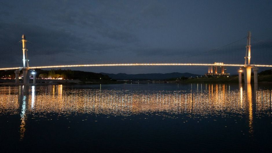 여주 남한강 출렁다리는 2025년 5월 1일 정식 개통했으며, 길이 515m, 보행 폭 2.5m, 주탑 높이 48m이다. 여주 남한강을 가로지르며 천송동과 연양동을 연결하는 교량으로, 강 위에 설치된 구조물 중 드물게 보행자 전용으로 설계되어 관광 및 휴식 공간으로 기능하고 있다. 주요 구조 형식은 현수교 방식이며, 출렁다리 바닥에는 미디어글라스가 설치되어 있어 바닥이 깨지는 보행 체험을 제공한다. 상부에는 미디어파사드 경관 조명이 조성되어 있어 야간에도 안전하고 아름다운 경관을 감상할 수 있도록 구성되어 있다. 또한 중앙에는 프러포즈존이 설치되어 있어, 방문객에게 특별한 추억을 남길 수 있는 체험 공간으로 활용되고 있다. 출렁다리는 여주시의 핵심 관광 자원으로 활용되고 있으며, 인근의 신륵사, 황포돛배, 한글시장 등과 연계되어 지역 경제 활성화에 기여하고 있다. 개통 이후 방문객 수가 꾸준히 증가해, 45일 만에 누적 방문객 100만 명을 달성하며 여주를 대표하는 관광명소로 자리매김하고 있다.