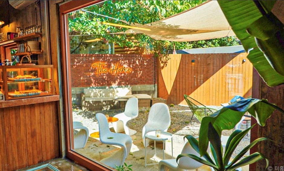 더홈은 경기도 안양시 석수동에 있는 카페이다. 1970년에 지은 주택을 개조하여 만든 카페로 따뜻하고 아늑한 분위기이다. 카페 내부는 자리마다 분위기가 다르고 공간마다 소소하지만, 감각있게 꾸며졌다. 홀과 함께 독립된 공간도 있다. 야외의 앞뒤 마당에도 예쁘고 편안한 좌석들이 있어서 내 집 마당에서 차 한잔과 함께 쉬는 기분이다. 대표메뉴이자 인기메뉴인 흙커피는 흑임자 크림과 흑임자 크럼블이 얹어진 라테이다. 흑임자 크림과 라테의 비율이 좋고, 일단 라테 맛이 좋다. 흑임자의 고소한 향이 달콤하게 라테와 잘 어울린다. 커피는 브라질과 콜롬비아 원두를 사용하며 산미가 적고 진하고 고소한 맛이다. 1km 이내에 호암산 숲길공원, 안양예술공원, APAP전망대, 3km 이내에 롯데몰 광명점, 비봉산 힐링공원, 충훈공원, 소하동 벽화마을이 있다.