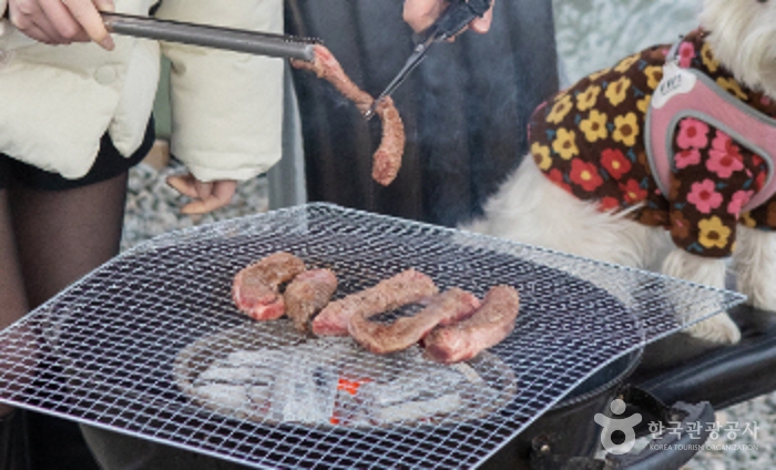 캠핑 형식의 바베큐를 즐길 수 있는 이색 음식점이다. 캠핑 형식이지만 맨손으로 방문하여도 모든 장비가 구비되어 있어서 편리하게 이용 할 수 있다. 원하는 고기를 직접 구매하여 숯불에 구워 먹는 재미가 있다. 야외지만 식사하는 공간은 비닐 천막이 있고 난방기도 준비되어 있어서 춥지 않게 식사가 가능하다. 팀별로 개별 공간이 나뉘어 있어서 편하게 식사를 즐길 수 있다. 천막 앞으로는 잔디밭과 공터가 있어서 아이들과 뛰어 놀며 즐거운 기억을 가져갈 수 있다. 외부음식물 반입은 불가능하다.