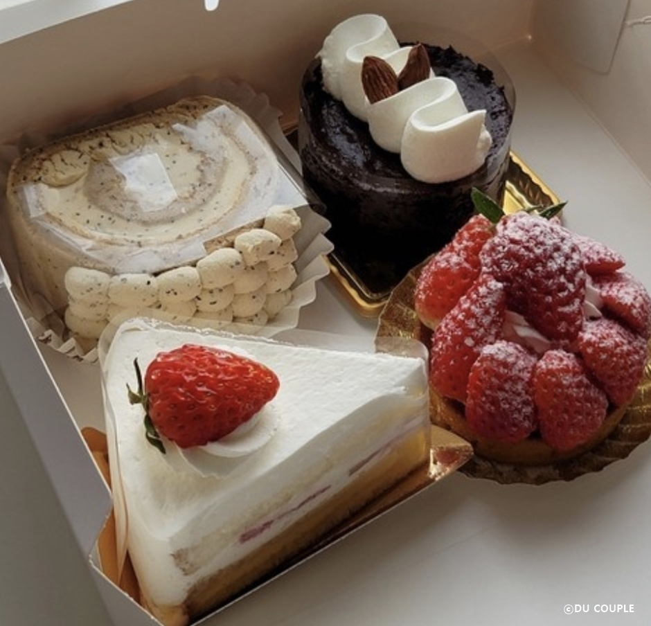 듀쿠플(DU COUPLE)은 아주대학교병원 앞에 위치한 구움과자 전문점이다. 2013년부터 시작한 이곳은 가공버터가 아닌 오직 천연버터와 벨기에산 리얼 초콜릿, 고급 타히티산 바닐라빈, 당도 높고 신선한 과일 등을 이용하여 케이크, 타르트, 쿠키 등을 만든다. 원하는 케이크를 원하는 날짜에 구매하기 위해서는 예약하는 것을 추천한다.