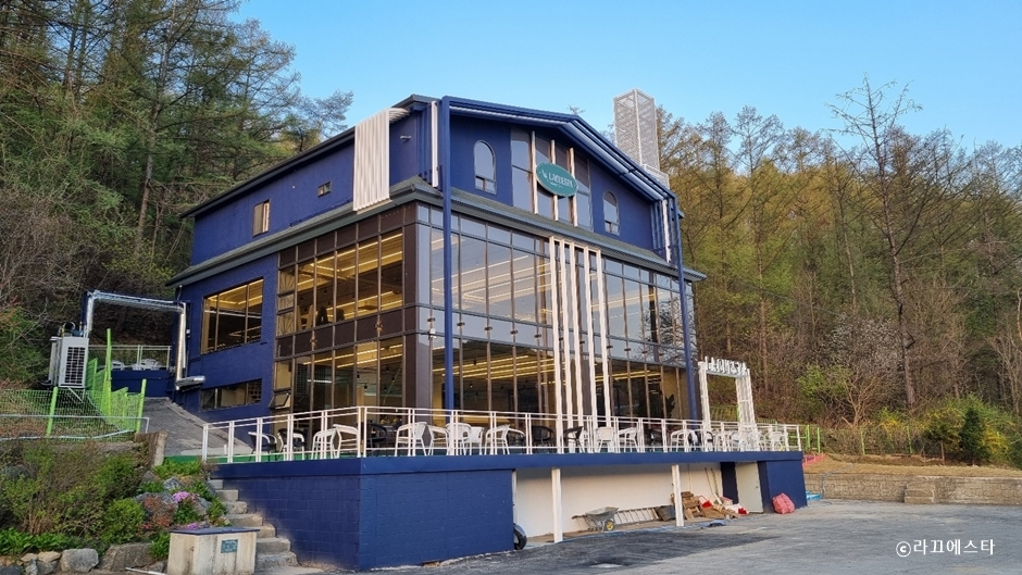 라꾸에스타는 경기도 광주 곤지암 중부CC 근처에 있는 브런치 카페이다. 진한 파란색 테두리에 통유리로 된 대형 건물로 매장 앞에는 넓은 주차장이 있어 주차를 편하게 할 수 있다. 층마다 넓은 매장은 개방감이 좋고 다양한 크기의 테이블이 여유롭게 배치되어 있다. 또한 야외에도 파라솔 테이블이 곳곳에 배치되어 있고 공원 가는 길을 따라 올라가면 잔디밭 곳곳에 텐트, 해먹, 그늘막으로 되어 있는 다양한 좌석들과 골프연습장이 마련되어 있다. 이곳은 1인 1 음료 주문이 필수로 커피와 허브티, 에이드 등의 다양한 음료와 많은 베이커리, 브런치메뉴들이 준비되어 있다. 라꾸에스타는 반려동물을 동반할 수 있는 곳으로 야외 곳곳에 많은 테이블이 있기 때문에 편하게 이용할 수 있다.