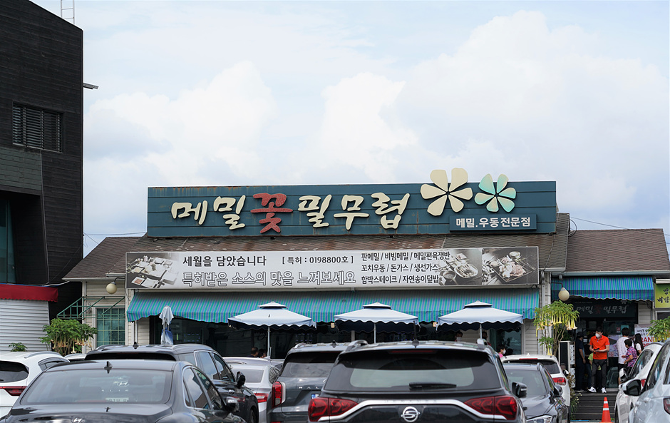 경기도 용인시에 위치한 메밀꽃 필 무렵은 온 메밀, 판 메밀, 김치 우동, 해물 냄비 우동 등 메밀을 사용하여 다양한 요리를 만든다. 살얼음 동동 뜬 육수에 메밀국수를 얹어내는 냉메밀과 매콤한 양념과 아삭한 양배추, 깻잎 등의 채소, 땅콩가루를 얹어내는 비빔메밀이 대표 메뉴이다. 이 외에도 돈가스 및 식사류가 준비되어 있다. 또한 직접 뽑은 메밀면과 육수를 포장 및 택배 주문할 수 있어서 언제 어디서나 맛볼 수 있다.
