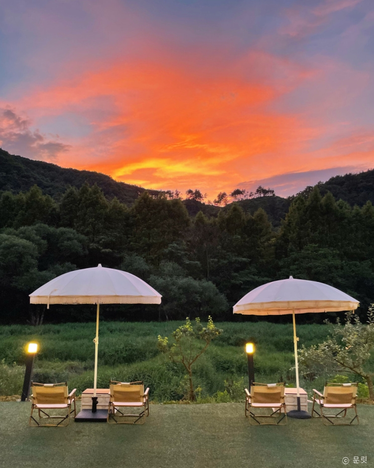 양평 문릿은 강원도와 서울을 오가는 길목에 있는 카페다. 넓은 야외 정원과 계곡 뷰, 그리고 이국적인 분위기를 느낄 수 있는 감성 공간으로 낮에는 넓은 정원을 저녁에는 멋진 야경을 즐길 수 있다. 마당이 있는 정원은 하늘을 가려주는 천막이 있고, 천막 사이로 보이는 하늘이 잘 어울리는 감성 공간이다. 정원은 반려견 동반이 가능하고 마당 한쪽으로는 반려견이 뛰어놀 수 있는 공간이 별도로 마련되어 있다. 계곡 쪽에는 온실&계곡 자리가 있다. 이곳은 어린이와 반려견을 동반할 수 없다. 2인 전용 공간으로 조용하고 편안하게 계곡 뷰를 즐기며 휴식할 수 있다.