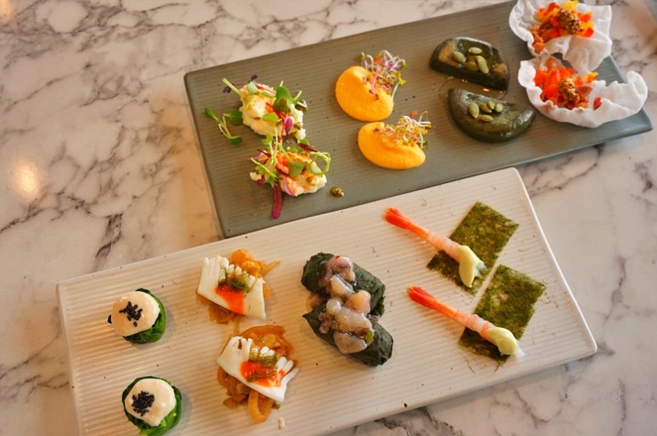 미곡반상은 익숙한 우리의 밥상에 새로운 아이디어들을 더해 선보이는 모던 한식당이다. ‘임금님표 이천쌀’ 지정업소로 이천의 자랑인 쌀밥을 맛볼 수 있다. 메뉴는 코스와 반상으로 구성되어 있어 둘 중 하나를 골라 먹을 수 있다. 코스를 시키면 메인메뉴를 비롯하여 여섯 가지의 한입 요리가 함께 나온다. 밑반찬에도 연근유자초절임이나 토마토양파김치같은 독특한 퓨전 메뉴들이 있다. 메뉴는 간이 과하지 않고 재료 본연의 맛을 잘 살렸으며, 맛뿐만 아니라 하나하나 정성이 보이는 플레이팅에 눈도 즐겁다. 이곳의 메인메뉴로는 직화구이한 차돌이 올라간 비빔밥, 벌교의 통통한 꼬막이 푸짐하게 들어간 비빔밥, 매콤함이 살짝 들어간 차돌박이 전골, 칼칼한 감칠맛의 만두 전골, 얼큰 칼칼한 김치육수의 돼지김치 전골이 있다.