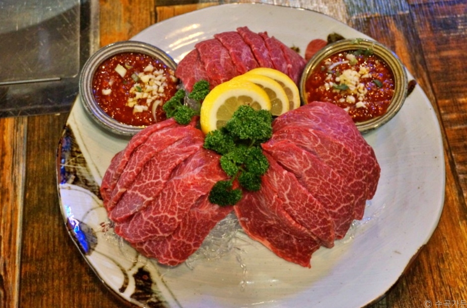 수곡가든은 경기도 여주시 교동에 있는 한우 전문점이다. 맛있고 품질 좋은 고기를 가성비 좋게 먹을 수 있다. 내부는 매우 넓고, 개별룸도 있어서 단체 모임이나 가족 모임에도 좋다. 고기를 구울 때 숯불 위에 미니 무쇠 판을 올려주어 고기가 어느 정도 익으면 무쇠 판에 올려 천천히 익혀 먹을 수 있도록 한다. 고기가 빨리 구워져서 급히 먹지 않아도 되고, 타지 않게 먹을 수 있다. 고기는 빛깔이 선명하고 신선하다. 화학 비료나 첨가제를 사용하지 않은 무항생제 1++ 한우와 한돈만 취급한다. 대표메뉴인 한우 특수 모둠은 당일 가장 질 좋은 부위로 준비한다. 수제 생갈비나 양념 갈비, 한우 육회도 인기 메뉴이다. 밑반찬은 다양하게 정갈하게 나오며 셀프바에서 더 가져다 먹을 수 있다. 매우 넓은 정원이 잘 꾸며져 있어서 식사 후 잠시 산책하듯 쉬어가기도 좋다. 2km 거리에 세종 산림욕장, 3km 거리에 여주신륵사, 4km 거리에 금은 모래강변 공원, 9km 거리에 한강 6경(바위늪경)-강천섬 등이 있고, 인근에 골프장도 많이 있다.