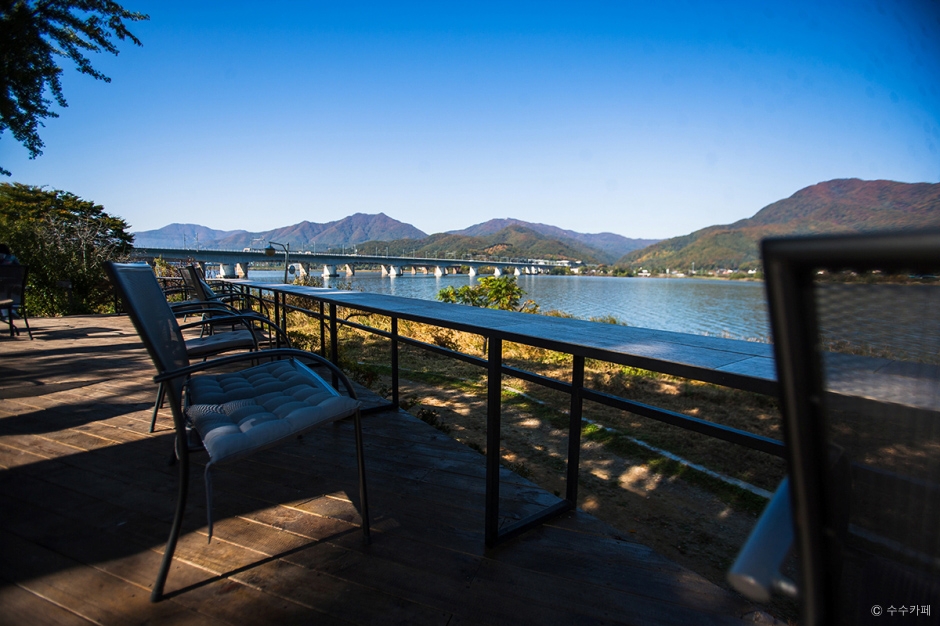 수수카페는 야외 테라스에 앉아 북한강을 바라보면서 데이트를 즐길 수 있는 곳이다. 6·25 전쟁 때 사용하던 야전병원을 활용한 공간으로 넓고 한적한 곳에 자리 잡았단 것도 수수의 장점이다. 아늑한 카페 공간에서 음료와 베이커리를 즐길 수 있고 산책로 따라 걸으면 별도의 별도 공간을 마련해 야외에서 차와 디저트를 즐길 수 있게 배치해 뒀다. 한강이 보이는 여유로운 공간으로 양평이나 두물머리를 찍고 이동한다면 꼭 한번 들려 볼 만하다.