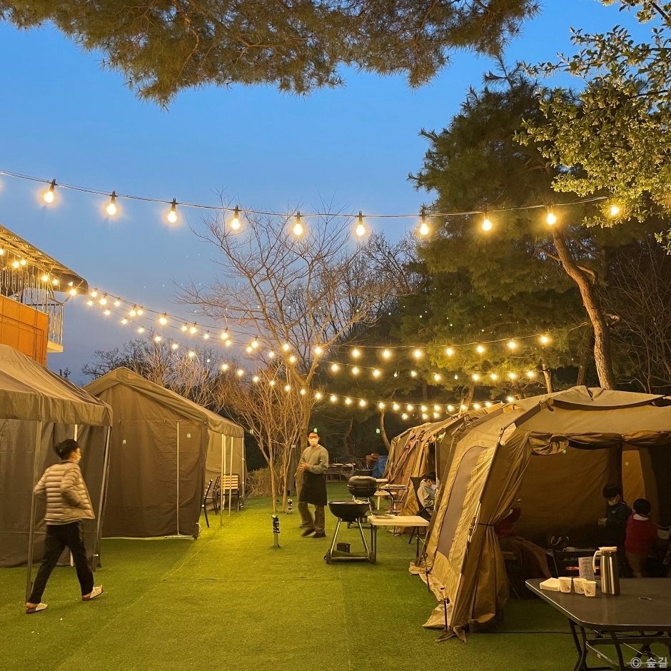 카페 숲길은 하남시 상산곡동에 있는 글램핑을 할 수 있는 카페이다. 주차는 카페 근처에 커다란 주차장이 두 곳이 있어 넉넉하다. 카페 이름처럼 숲길이 옆에 나 있고 작은 계곡이 있어 날씨가 포근할 때는 시원한 물에 발을 담글 수 있다. 네이버를 통해 예약하면 텐트에서 고기도 구워 먹을 수 있는 글램핑을 할 수 있다. 낮과 저녁 두 타임으로 운영되고 있다. 물론 분위기 좋은 실내 카페도 있어서 카페 안에서 차를 즐길 수도 있다. 야외 텐트는 반려동물도 동반할 수 있다. 어린이들이 있는 집이라면 물놀이를 할 수 있는 시기에 와서 다슬기 잡는 체험도 할 수 있다.