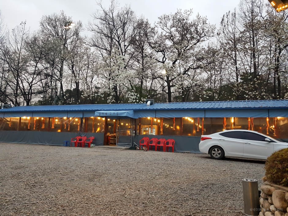 숲속에 고기집은 최상급 고기, 1++ 한우와 한돈을 판매하는 정육 식당이다. 말 그대로 산속에 있으며, 조용하고 아늑한 시골느낌으로 도시와는 다른 정취를 느낄 수 있다. 야외에서 구워 먹게 되어 있어 캠핑하는 느낌이 나는 곳이다. 식당은 왼쪽과 오른쪽을 구분해 놓았는데 왼쪽은 일반 손님들이 앉고, 오른쪽은 반려견을 동반할 경우 이용할 수 있어서 서로 불편함 없이 식사할 수 있다. 자리를 잡고 정육식당에서 고기를 구매해 와서 구워 먹으면 된다. 기본 찬으로 상추와 콩나물, 쌈장, 마늘, 김치 등이 나오는데 부족한 반찬은 셀프 코너에서 가져오면 된다.