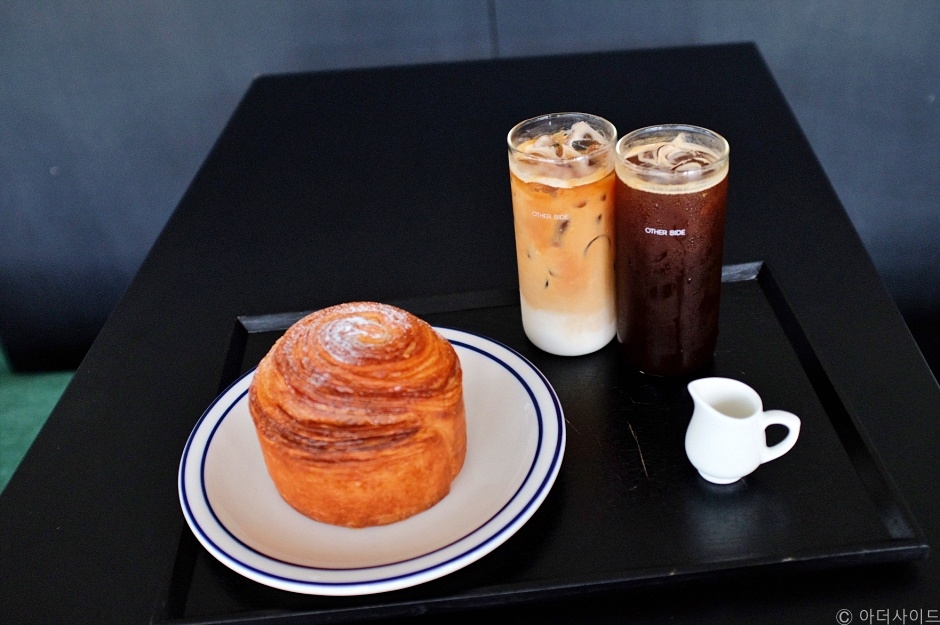 아더사이드는 경기도 안양시 관양동에 위치한 카페이다. 감각적인 인테리어에 매장이 넓고 통창으로 채광이 좋다. 좌석들이 벽으로 분리되어 있어서 대화를 나누기 좋다. 아더사이드는 전담 로스터가 커피를 직접 로스팅하여 진하고 풍미 있는 커피 맛을 즐길 수 있다. 매장에서 빵을 직접 구워내며 크로플과 크루아상, 몽블랑, 스콘 맛집으로도 인기다. 반려동물을 동반할 수 있다.