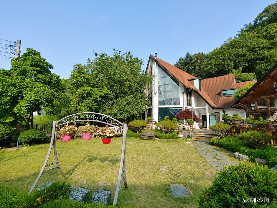 에제르카페는 경기도 광주시 남한산성면 엄미리에 있는 카페이다. 에제르(EZER)는 ‘돕는 자’를 의미하는 히브리어다. 전용 주차장이 있어 차량 이용 시 편하게 주차할 수 있다. 주차장에서 정원을 지나 보이는 건물로 야외정원과 테라스에 다양한 테이블이 배치되어 있다. 통창으로 개방감이 좋은 내부는 화려한 샹들리에와 자줏빛 커튼이 돋보이며 다양한 크기의 테이블이 배치되어 있고 안족에는 우드와 화이트로 꾸며져 있으며 벽난로와 좌식 테이블이 있다. 에스프레소, 아메리카노 등의 커피 메뉴와 허브티, 에이드 등의 음료가 있고 다양한 디저트가 준비되어 있다.