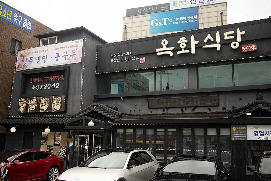옥화식당은 경기도 구리시 수택동에 있는 남도식 한돈·한우구이 전문점이다. 식당 건물 바로 앞에 주차장이 있어 편리하게 이용할 수 있다. 실내는 깔끔한 테이블에 구리색 연기 흡입 통이 있어 쾌적하게 고기를 구울 수 있다. 대표 메뉴는 14일간 숙성되어 식감이 부드럽고 쫄깃한 한돈과 한우구이이다. 다양한 쌈 채소에 고추냉이, 젓갈을 얹어 잘 구워진 고기랑 싸 먹는 재미가 있다. 또한 당일 도축한 한우로만 만 만든 한우육회도 한정 수량으로 맛볼 수 있다.