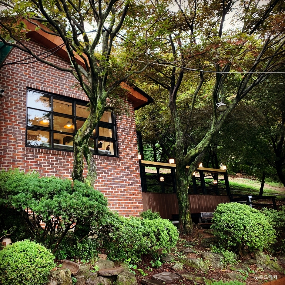 광주시 도척면 얼음골길에 있는 숲속 카페다. 들어가는 입구부터 나무가 많고 내부 정원은 조경이 잘 되어있다. 야외에는 정자와 파라솔 테이블, 그네 의자가 있어 곳곳에 마련된 자리에서 마음껏 자연을 힐링할 수 있다. 나뭇가지 사이로 카페 건물이 보이며 테라스 좌석이 눈에 들어온다. 건물 내부는 세 개의 구역으로 나뉘는데 깔끔하고 정돈된 분위기다. 넓게 나 있는 창을 통해서 자연을 바라볼 수 있다. 건물 앞쪽에는 테라스가 있어 테라스에 앉을 수 있다. 야외테이블에 앉으면 산과 숲, 나무와 꽃들을 보며 좋은 공기를 마시며 힐링할 수 있다. 산책로가 잘 정비되어 있어 커피 한잔 후 산책하기에 좋다. 산책로를 따라 산책하며 다양한 포토존에서 사진 찍는 재미도 있다. 스페셜티 커피와 수제 과일티, 에이드, 파이와 빵, 팬케이크를 판매한다. 메인 메뉴는 수제로 만든 피칸 파이로 인기 메뉴다.