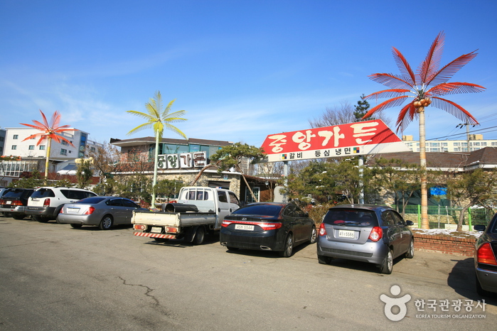 ‘중앙가든’은 안성 한우만 취급하는 숯불구이 전문점으로 유명하다. 구이용 한우고기뿐만 아니라 반찬으로 나오는 음식들도 안성 인근에서 자라는 재료들을 사용하는 로컬푸드 음식점이라고 한다. 구이류뿐만 아니라 육회비빔밥, 냉면, 갈비탕 등 식사류의 음식도 준비되어 있다. 이곳의 음식의 맛은 전체적으로 깔끔하다. 매장 내부에는 좌석수가 많아 각종 모임이나 회식 등 단체 이용 장소로도 적합하다.