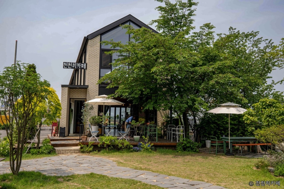 경기도 파주시 서패동에 위치한 베이커리 카페인 천천히카페는 근처에 심학산 야영장 글램핑 가든이 있어 글램핑을 하러 온 사람들이 많이 방문한다. 아늑하고 한적한 분위기를 느끼고 싶다면 내부에, 정원에 있는 식물과 자연을 바라보며 힐링을 하고 싶다면 야외에 앉아 음료를 마실 수 있다. 날씨가 좋으면 밖에 누워서 잠들어 있는 고양이를 볼 수도 있다. 많은 사람이 모여 왁자지껄한 카페와 달리 고요한 감성 카페이다.