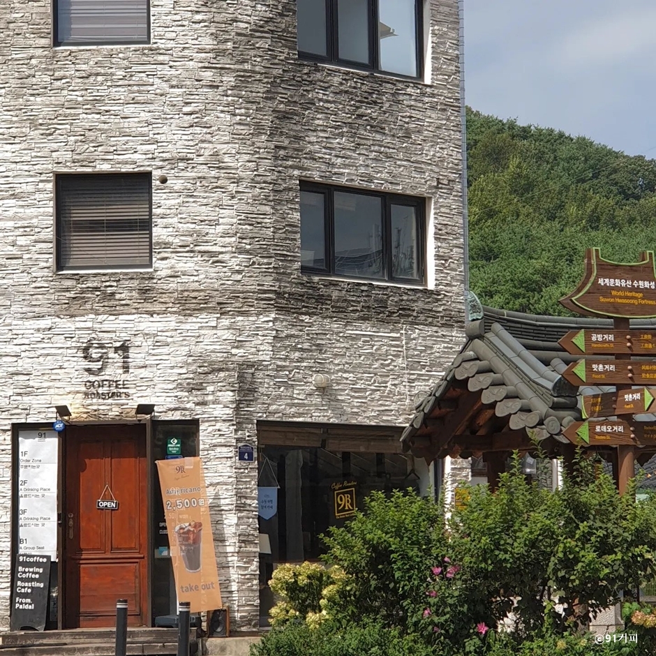 91커피는 수원 화성행궁 옆에 있는 로스팅하는 카페이다. 3층짜리 단독건물로 빈티지한 소품들로 꾸며져 있는 이곳은 1층에는 음료 주문 및 로스팅하는 공간이며, 2층과 3층은 다양한 크기의 테이블이 여유롭게 배치되어 있다. 또한 각종 모임을 할 수 있는 단체석이 지하 1층에 별도로 마련되어 있다. 근처에는 화성행궁 외에도 공방 거리, 수원통닭거리 등의 다양한 볼거리와 먹거리가 있다.