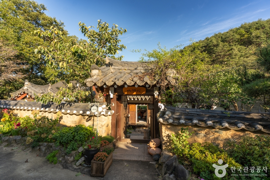 덕동문화마을 안에 있는 세월이 묻은 고택과 유형문화재, 울창한 소나무 숲에 숨겨진 명소, 한옥 카페 ‘가배원’에 들어서면 고양이들이 있다. 정자를 개조한 기둥과 대들보가 살아 있는 공간에 고풍스러운 소품과 사장님이 직접 그린 그림들의 조화를 이루는 평화롭고 고즈넉한 풍경 속에서 잠시 도심을 떠나 쉴 수 있는 곳이다. 메뉴는 커피와 기본 음료들도 좋지만, 5년 숙성된 오미자차, 생강차, 중국 운남성에서 공수한 100년 된 고수홍차와 시금치피자, 무화과 호밀빵 등 전통가옥에 어울리는 화려하지는 않지만 담백하고 깊은 자연의 맛을 추천한다. 마당을 품은 창가나 야외 테라스에 앉아 시원한 바람과 맑은 숲 공기를 마시며 즐기는 시간은 잠시 잠깐의 신선놀음이다. 테라스 끝에 계곡으로 이어지는 계단으로 내려가면 맑은 1급수가 1년 내내 흐르고, 봄에는 화사한 꽃이, 여름에는 청량한 숲이, 가을은 노란 은행나무들이 겨울엔 설경이 안내하는 자연 속에서 사람을 경계하지 않는 고양이들과 잠시 힐링할 수 있는 공간이다.