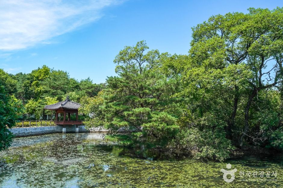 가오실지는 1549년 조선 명종 4년 지보면 신풍리에 살던 이경백이 가곡리 마을 앞에 연못을 판 것에서 시작된다. 연못 가운데에 작은 섬을 두었는데 이는 불로장생을 기원하는 신성사상에서 영향을 받은 것으로 조선시대 유행한 정자 양식이다. 섬 안에는 300년은 넘은 노거수 버드나무와 소나무가 있고, 여름이면 만개한 연꽃이 더해져 진풍경을 연출한다.