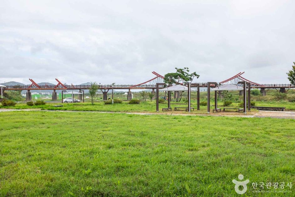 곡강천생태공원은 차박이나 노지 캠핑을 즐기는 캠퍼들 사이에서 잘 알려진 명소다. 공원 내에 무료로 텐트를 설치할 수 있으며, 화장실 등의 기본 시설도 갖추고 있어 편리하다. 단, 이곳은 상수원 보호구역으로 지정되어 있어 취사가 엄격히 금지되어 있다. 따라서 야영을 하려면 불을 사용하지 않는 ‘비화식’ 요리를 준비해야 한다. 공원에는 1940년대에 건립된 것으로 추정되는 곡강천 철도교각이 있으며, 약 150m 길이의 이 교각에 오르면 곡강천의 전경을 한눈에 조망할 수 있다. 이 밖에도 축구장, 농구장, 야구장, 테니스장 등 다양한 운동시설이 갖춰져 있어 여가 공간으로도 인기가 높다.