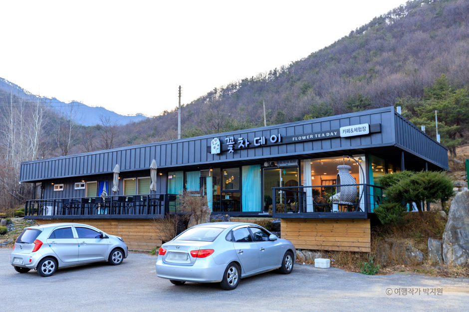 꽃차 DAY는 메리골 드꽃차, 비트차, 백연잎차, 국화차 등 꽃 차를 맛볼 수 있는 공간이다. 내부에 발을 들이면 심신이 안정을 찾는 기분이다. 밝고 온화한 분위기의 인테리어, 감각적이고 아늑한 조명, 귓가를 간질이는 잔잔한 음악, 바깥 경치가 온전히 보이는 통유리 덕택이다. 이곳에서는 꽃 차나 꽃 식초 만들기 체험도 진행한다. 7세 이상이면 누구나 가능하다. 원하는 꽃을 고른 다음 자신이 원하는 농도의 베이스를 만들어 끓인 후 용기에 담으면 끝이다. 모든 과정을 꽃차 DAY 대표가 함께하기에 어려울 것이 없다.