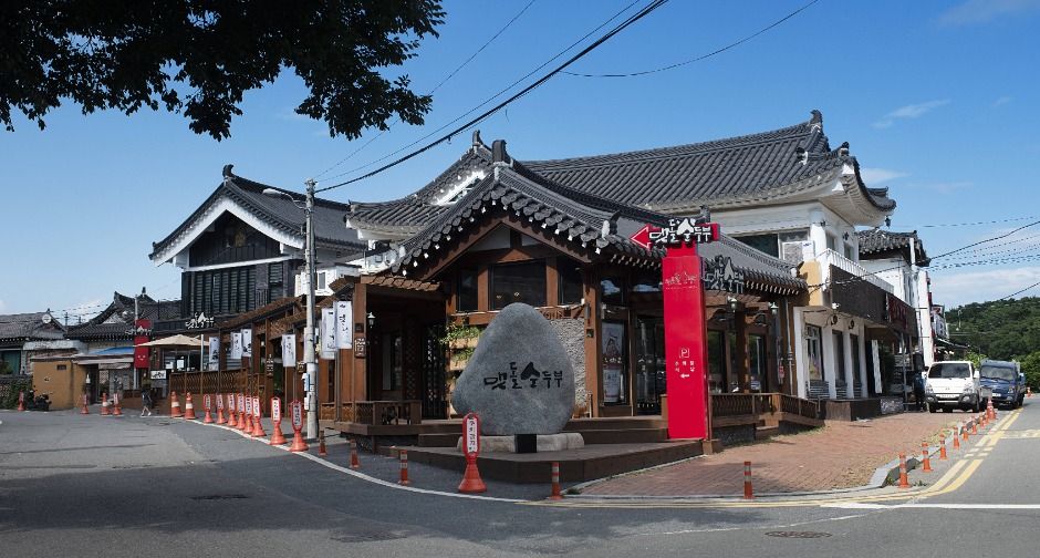 경주시 보문관광단지의 초입이며 북군 관광단지 내에 있는 맷돌순두부집은 경주를 찾는 관광객들로 항상 붐빈다. 넓은 주차장이 있어 주차하기가 쉽고 홀서빙과 주문이 신속하여 손님들이 많아도 분주한 느낌이 덜하다. 양옥들 사이로 한옥의 미닫이문이 있어 식당만의 고유한 느낌이 들게 하지만 테이블엔 무선 벨이 있어 현대적인 시설도 갖춰져 있다. 맷돌순두부의 메뉴는 국내산 콩으로 매일 직접 만든 맷돌순두부, 순두부찌개, 통돼지 바비큐, 녹두전으로 비교적 간단하다. 갖은양념이 담뿍 들어간 간장 양념을 풀어 하얀 순두부에 술술 저어 떠먹는 맷돌순두부와 콩비지 찌개 맛도 구수하지만, 메인 음식에 밀려 꽁치구이, 배추김치, 호박 무침, 청포묵으로 이뤄진 밑반찬은 그다지 손길을 끌지 못한다. 맛과 영양의 보고인 콩을 주원료로 하는 순두부의 명가답게 그날 사용할 두부를 새벽부터 직접 만들어 맛있고 영양이 많은 두부 요리를 탄생시키고 있다. 100% 국내산 콩을 기계 맷돌에 직접 갈아 고소하고 담백하며 건강에도 좋다.