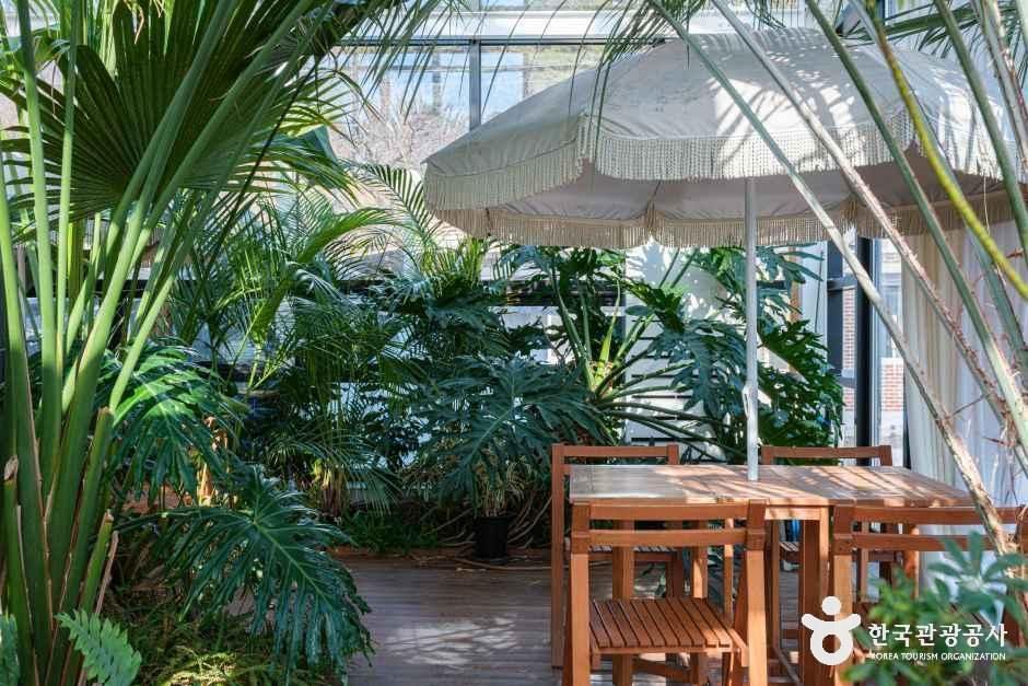 대표 메뉴인 아메리카노를 비롯해 카페라테, 아인슈페너, 에이드, 눈꽃 아몬드 팥빙수 등을 판매하며 다채로운 베이커리도 곁들일 수 있다. 특히 영주 사과와 오렌지, 시금치, 케일로 만든 건강 음료인 ‘Green 주스’와 바스크 옥수수 치즈케익, 트리플 베리 크럼블 파이가 많은 사랑을 받고 있다.