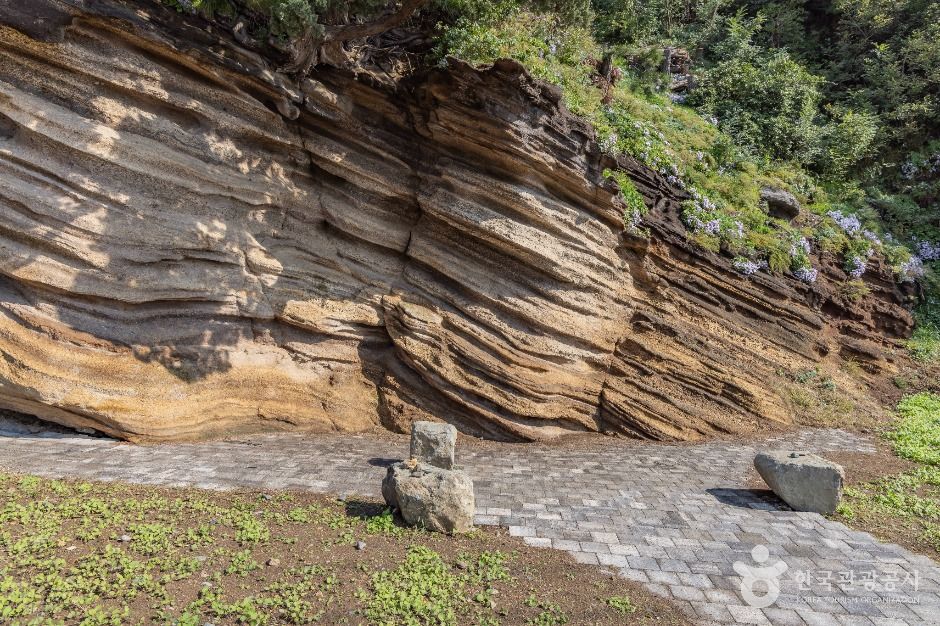 버섯바위는 뜨거운 용암이 수중에서 분출할 때 생성된 미세한 화산쇄설물 입자가 퇴적된 응회암이다. 겹겹이 쌓인 지층이 차별침식을 받아 버섯을 닮은 외형을 보인다.