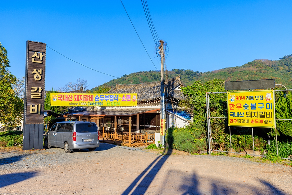 산성숯불갈비는 경상북도 경주시 보문동에 있다. 30여 년 전 개업한 이곳은 한옥으로 지어진 덕분에 외관에서 고풍스러운 멋이 풍긴다. 깔끔한 분위기를 연출하는 인테리어도 눈에 띈다. 내부에는 단체석이 마련되어 있어 각종 모임을 하기 좋다. 대표 메뉴는 한우 등심이며, 한우 꽃갈비살, 한우 갈비살, 한우 안창살 등 각종 구이용 한우도 준비되어 있다. 이 밖에 돼지갈비, 한우 떡갈비+순두부뚝배기정식 등을 판다. 경주 IC에서 가깝고, 주변에 보문관광단지와 경주동궁원이 있다.