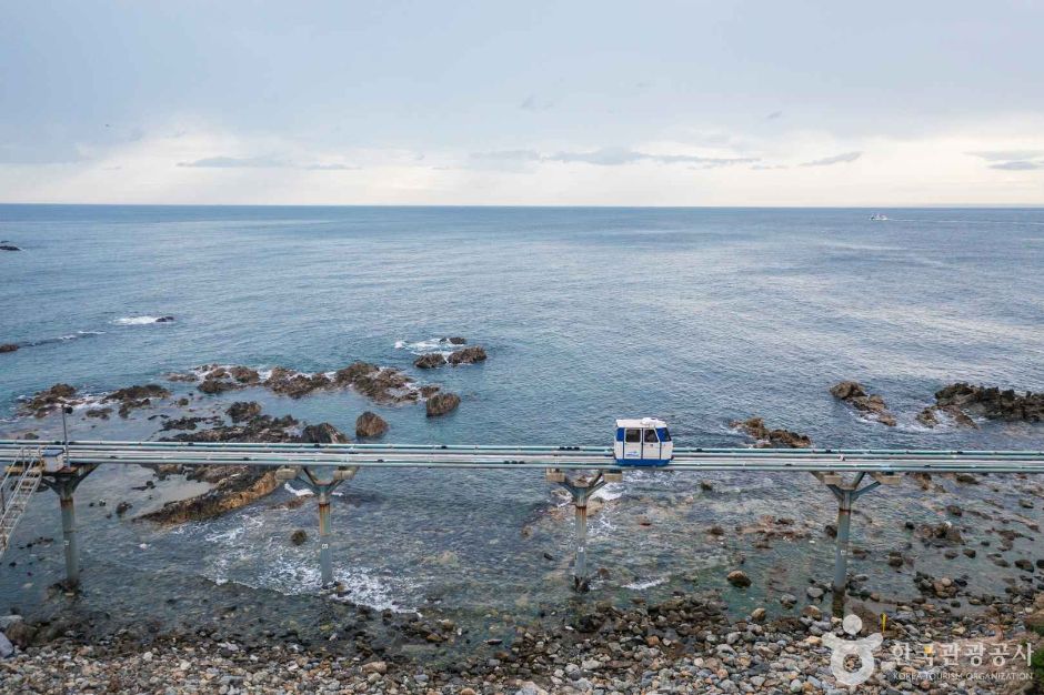 죽변해안스카이레일은 죽변 승하차장과 봉수항을 오가는 2.8㎞의 코스로 이루어져 있으며, 자동으로 움직이는 모노레일로 여유롭게 멋진 자연경관을 관람할 수 있다.