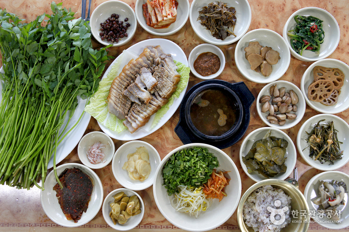 청도 한재마을에서 재배하는 무농약 미나리와 수육을 함께 맛볼 수 있는 음식점이다. 한재마을에서 유일하게 수육으로만 20여 년간 영업 중인 식당으로, 12월 초부터 4월 중순까지 쉬는 날 없이 점심시간에만 영업하고 4월 말이면 문을 닫아 12월에나 다시 문을 연다.