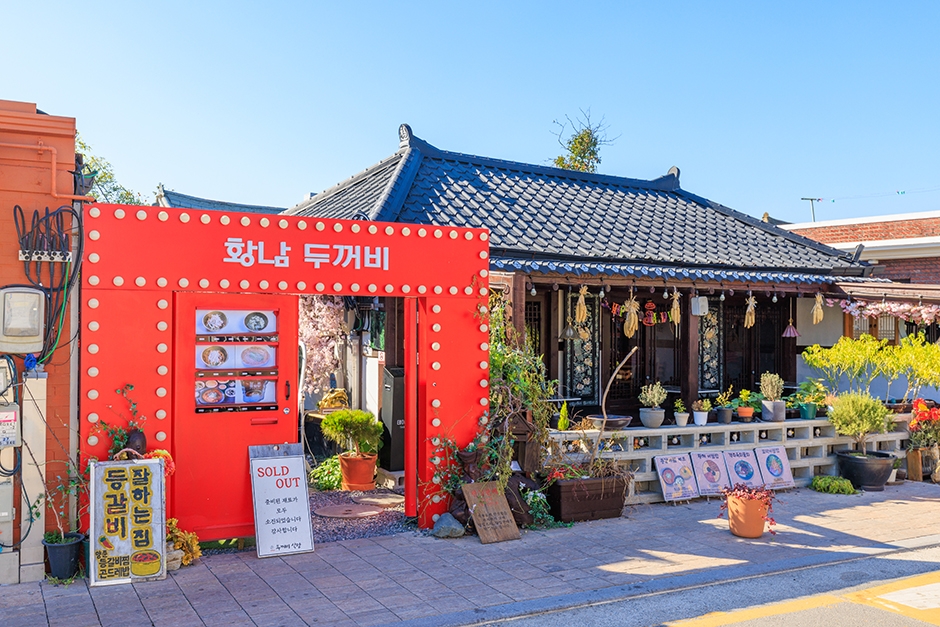 황남두꺼비식당은 경상북도 경주시 황남동에 있다. 한옥의 고풍스러운 멋과 더불어 현대적인 분위기의 외관이 돋보인다. 예스럽고 감성적인 분위기를 연출하는 인테리어도 눈에 띈다. 대표 메뉴는 매운 등갈비찜이며 간장 등갈비찜, 묵은지 등갈비찜도 인기가 많다. 이 밖에 벌교 꼬막 무침, 경주 한우 육회, 수제 떡갈비 등이 준비되어 있다. 경주 IC에서 가깝고 주변에 첨성대를 비롯해 국립경주박물관, 경주교촌한옥마을 등 경주의 유명 관광지가 많다.