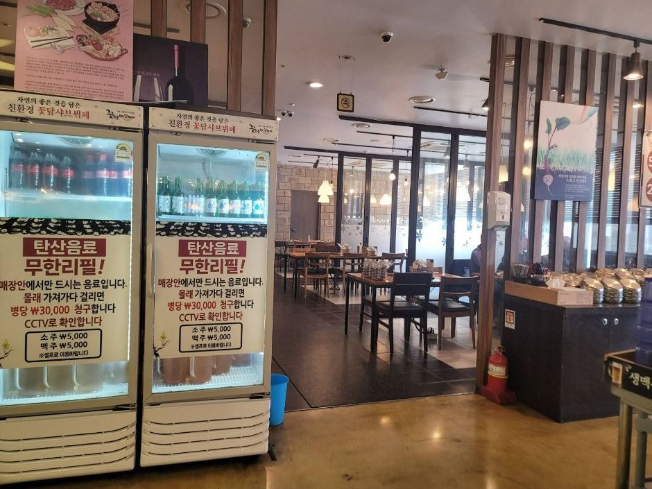 꽃담샤브는 1인용 친환경 샤부샤부 뷔페로, 100분의 시간 동안 개인의 취향에 맞는 육수를 선택해 개인 화로로 각자 먹을 수 있는 장점이 있어서 많은 사랑은 받는 음식점이다. 채소와 소고기를 무제한으로 즐길 수 있는 샤부샤부 외에도 초밥류, 중식류, 신선한 샐러드, 디저트류 등 어른, 아이들의 입맛을 사로잡을 뷔페 메뉴가 풍부하다. 꽃담샤브는 건물 7층에 위치해 전망도 좋고, 공간이 넓어 가족 단위로 방문하기 좋다. 음식도 깔끔하고 맛있어 근처 주민들의 사랑을 받는 무한 리필 뷔페이다. 꽃담샤브에서의 100분은 맛있게 즐기면서 보내는 행복한 시간이 될 것 같다.