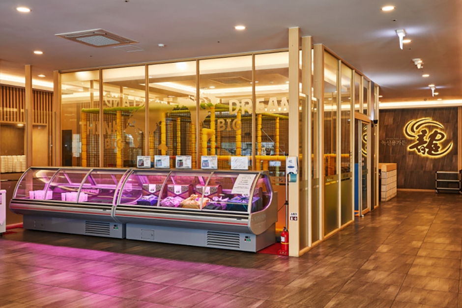 웅장한 크기가 입구부터 예상되는 녹산용가든은 넓은 주차장은 물론 깔끔한 외관과 소규모 인원부터 대규모 단체까지 수용이 가능한 실내 공간이 인상적인 곳이다. 고기를 파는 건물과 일본식 용장어를 파는 식당도 있으며 한쪽에 녹산용가든 자체에서 운영하는 카페도 있다. 한 장소에서 든든한 식사와 여유롭게 커피까지 가능하다. 취급 메뉴는 프리미엄 한우와 한돈이며 이외에도 육회, 갈비탕 등이 준비되어 있다. 고기가 나오기 직전 불과 함께 기본 반찬들이 세팅된다. 유아 놀이방과 연회장도 완비되어 있다. 회식, 돌잔치, 회갑연, 생일파티를 하기에 안성맞춤인 장소이다.