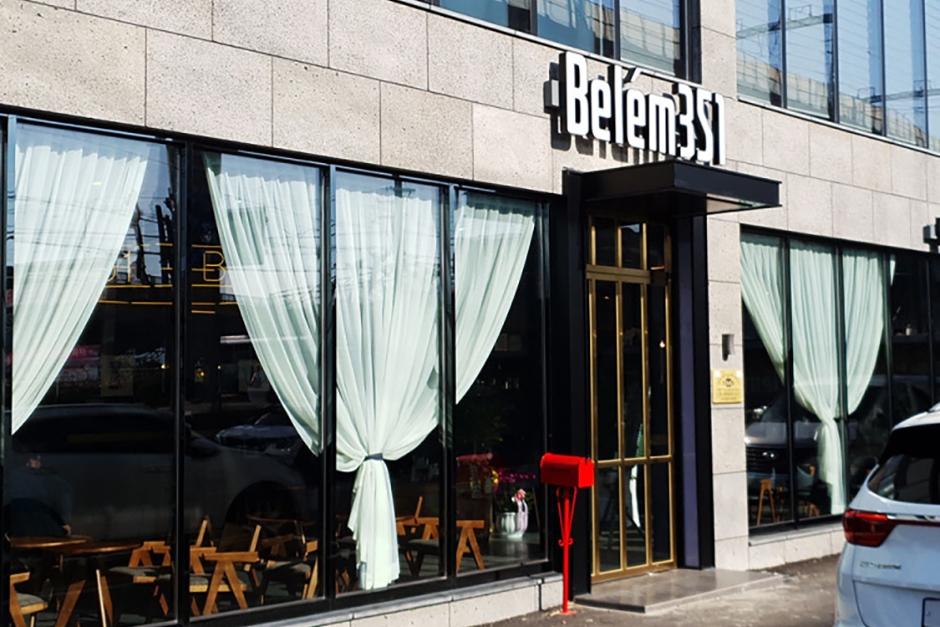 벨렘351은 부산 강서구 대저생태공원 인근에 위치한 대형 베이커리 카페로, 넓은 공간과 감각적인 인테리어로 인기가 있다. 이곳은 제과 명인으로 인증받은 대표가 운영하는 곳으로, 2019년 포르투갈 현지를 직접 방문해 현지 장인으로부터 전통 에그타르트의 제빵 기술을 전수받았다. 정통의 맛을 완벽하게 재현하기 위해 포르투갈에서 사용하는 제빵 기계를 직수입해 베이커리 생산에 활용하고 있다. 빵 외에도 커피와 다양한 디저트를 함께 즐길 수 있으며, 건물 상층에 위치한 루프탑은 대저생태공원의 전경을 한눈에 내려다볼 수 있다. 루프탑 공간은 탁 트인 개방감을 자랑하며, 단체 손님이 이용할 수 있는 넓은 테이블부터 커플을 위한 아늑한 프라이빗 공간까지 다양하게 마련되어 있어 누구나 편안하게 머물 수 있는 분위기를 제공한다.