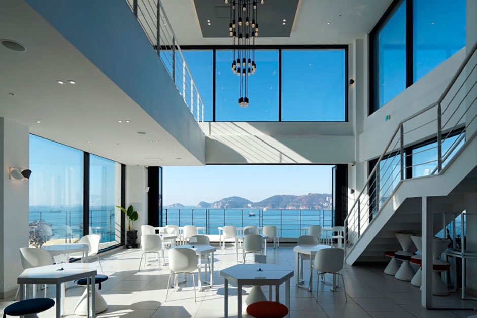 독특한 구조의 카페 에테르는 흰여울 문화마을 비탈길에 있다. 총 4층 건물로 1층~2층 실내 공간, 3층 테라스, 4층 루프탑으로 되어있는 큰 규모의 카페이다. 3~4층 야외 공간은 안전상의 이유로 노키즈 존으로 운영된다. 대로변 입구로 들어오면 보이는 계산대 층이 3층으로 위로 이동하면 루프탑이 아래로 내려가면 1~2층 실내 카페 공간이 나온다. 에테르의 가장 큰 매력은 전 층 통창으로 어느 자리에 앉든 바다 뷰를 볼 수 있다. 특히 4층 루프탑에는 선베드가 마련되어 편하게 부산의 바다를 즐길 수 있다. 저녁에 방문하면 실외에서 바라보는 밤바다와 남향대교, 흰여울길, 주택가의 멋진 야경을 볼 수 있다. 메뉴는 커피와 각종 차, 음료, 랍스터 롤, 크림 알감자 빠네, 브런치 등 다양하게 마련돼 있다. 2025년 7월 12일부터 브런치 리뉴얼로 브런치는 잠시 운영을 중단하니 참고하고 방문해야 한다.